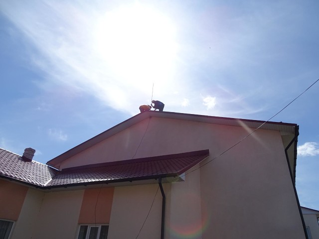 Навчальний заклад, як і приватний будинок, має бути оснащений громовідводом для захисту споруди від ураження блискавкою. Оператор газової котельні Шородок К.І. та робітник по обслуговуванню Ткачук А.В. взялися встановити такий пристрій на будівлі навчально-виховного комплексу. Також вони завершили роботи по встановленню снігозатримувачів на даху навчального закладу.